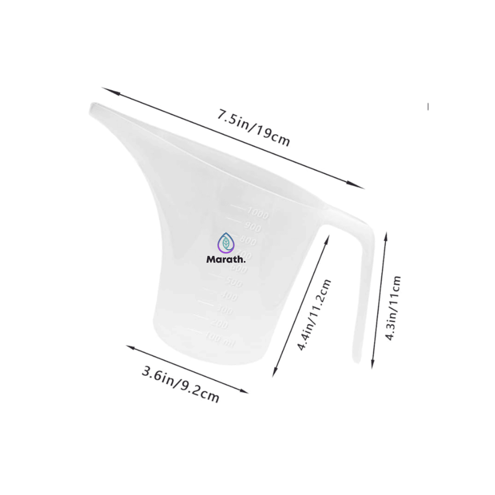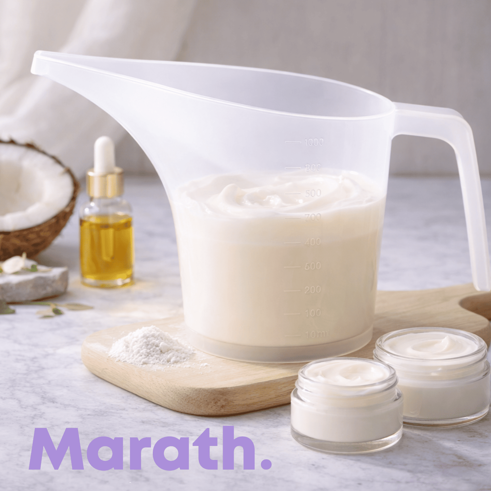 Está fabricada en polipropileno transparente de alta calidad, libre de BPA y resistente al uso frecuente. Su diseño con boquilla larga ayuda a dirigir el vertido directamente al molde o recipiente, evitando derrames y facilitando el trabajo con ceras, bases de jabón, aceites y preparaciones cosméticas.